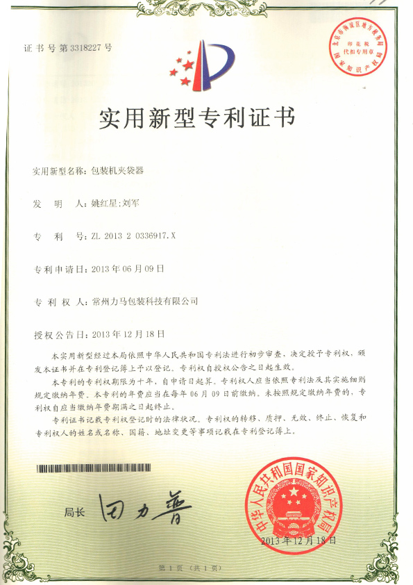 包裝機夾袋器專利證書.jpg